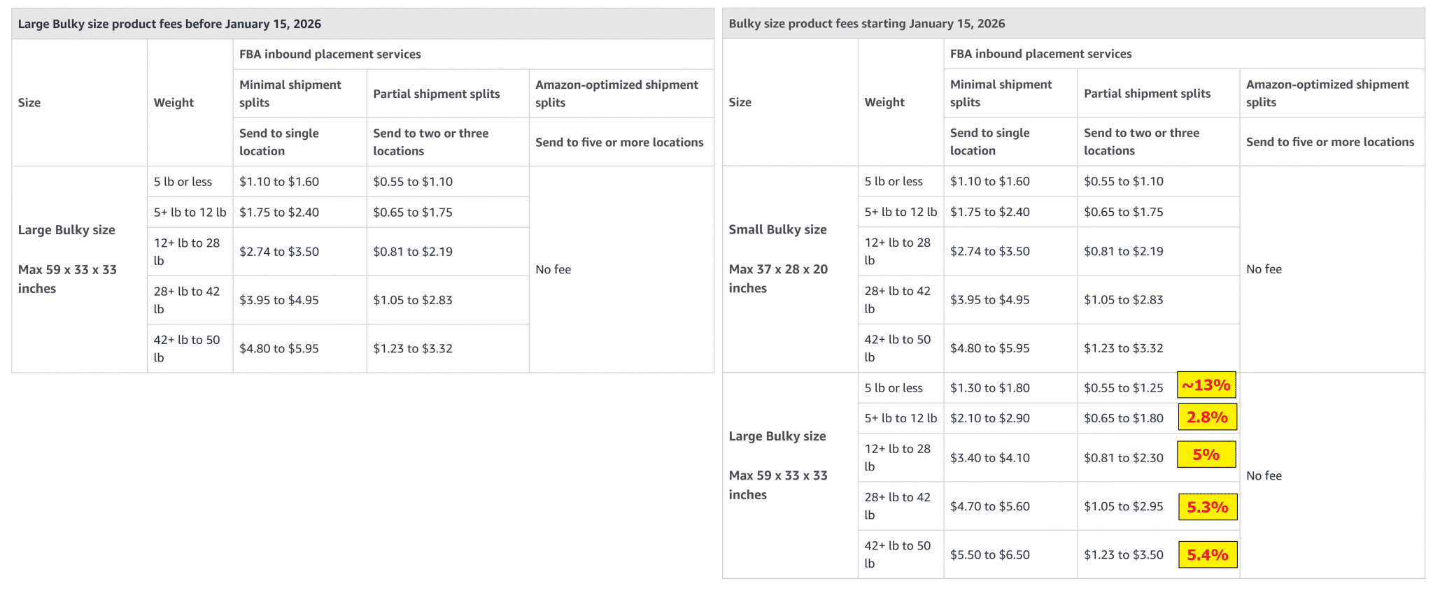 Here's a summary of the FBA fee changes coming into effect:
