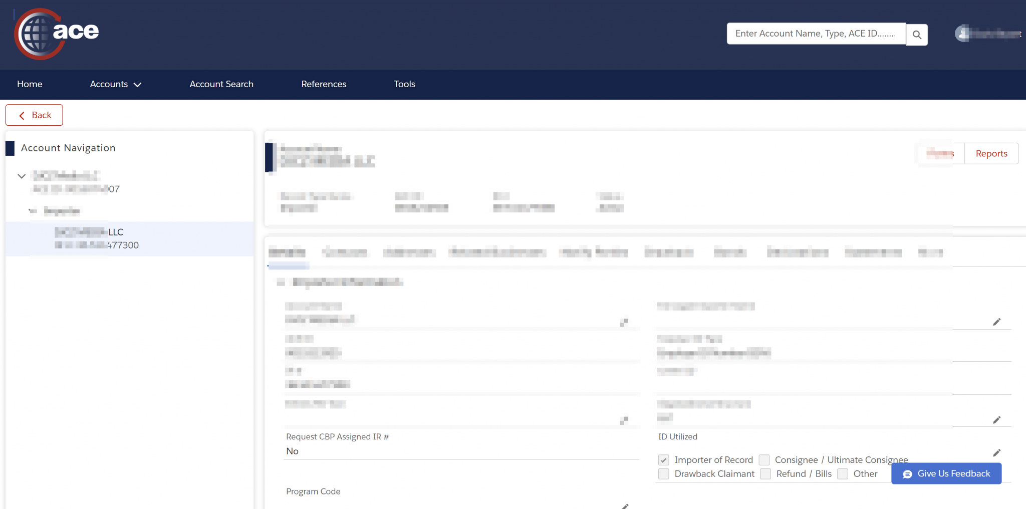 - On the next page, scroll down to importers and find the company you created your ACE account for.